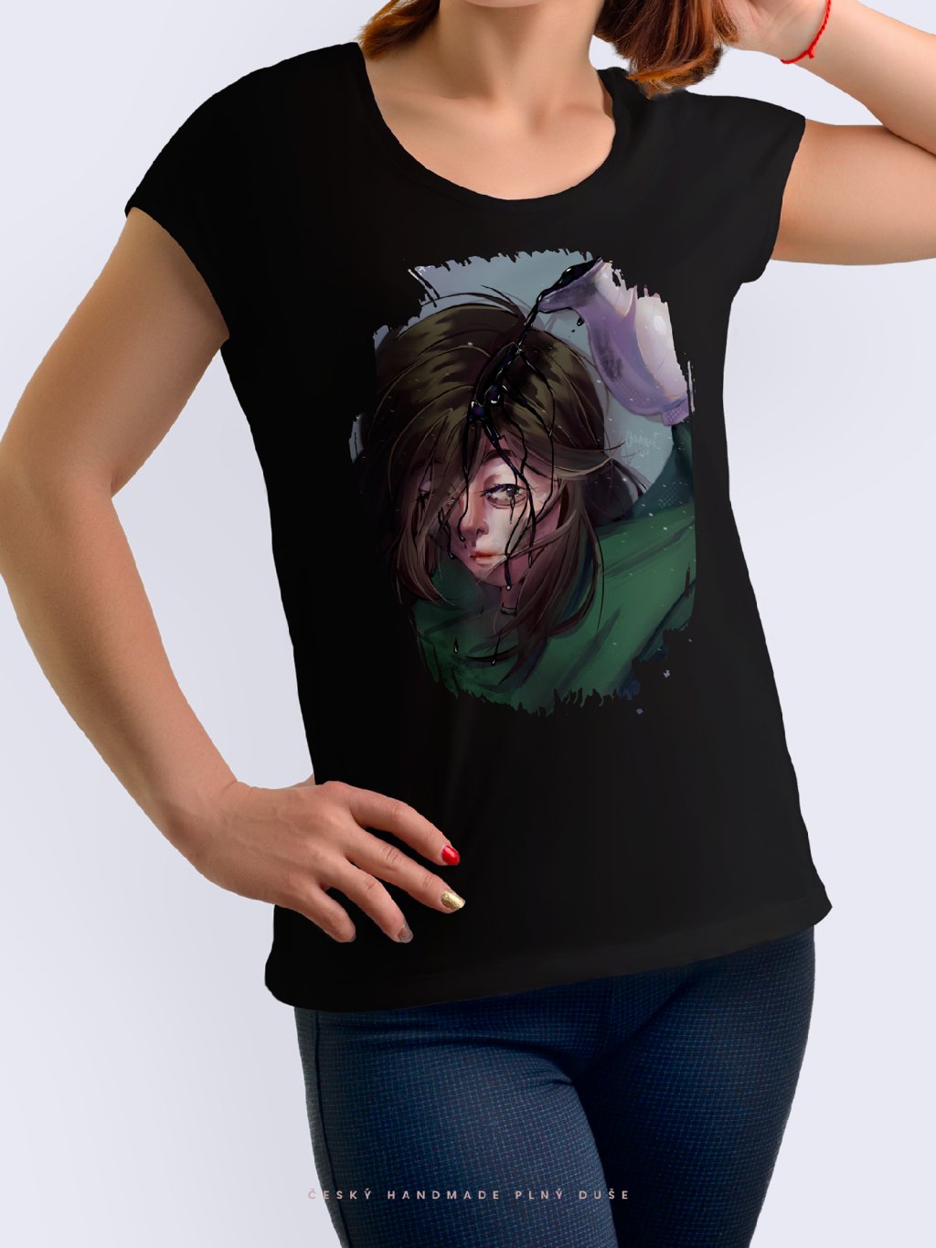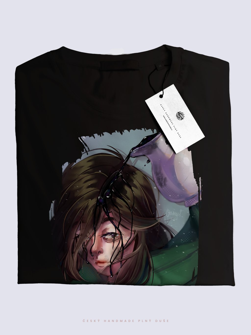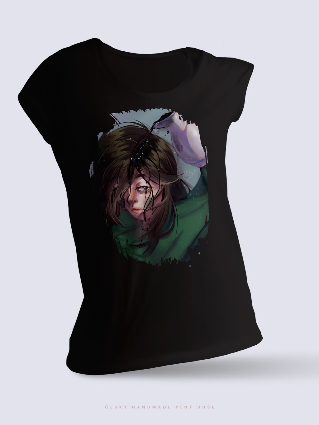 Černé tričko s autorskou ilustrací působí elegantně, tajemně a nadčasově.