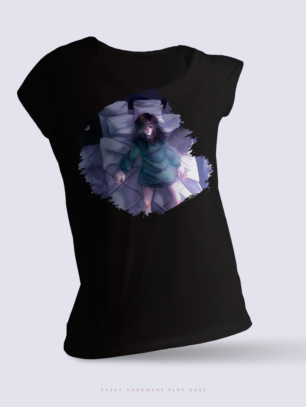Černé tričko s autorskou ilustrací působí elegantně, tajemně a nadčasově.